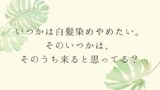 それでも白髪を許せる自分になれたというのは、とても大きな一歩でした。